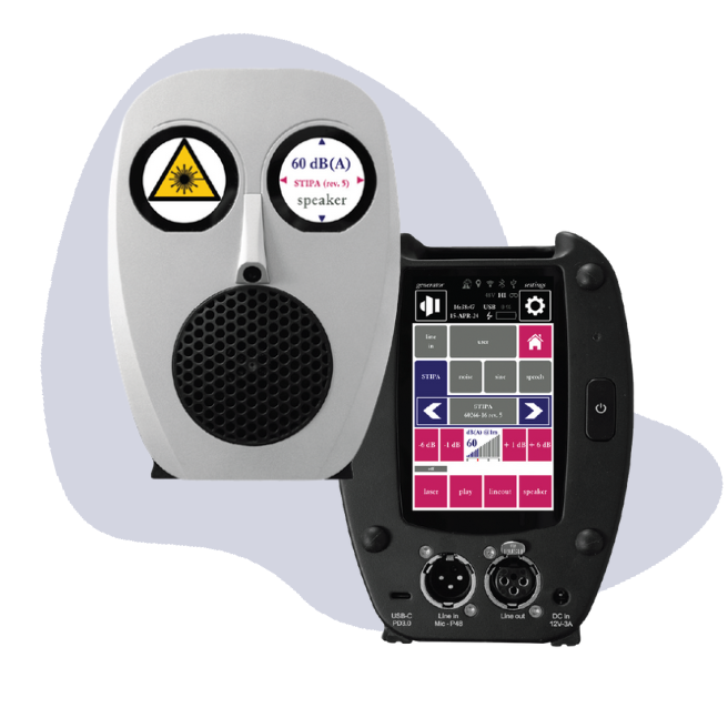 - Plays back STIPA, speech, noise, sine waves, and sweeps — all with calibrated level and spectrum
